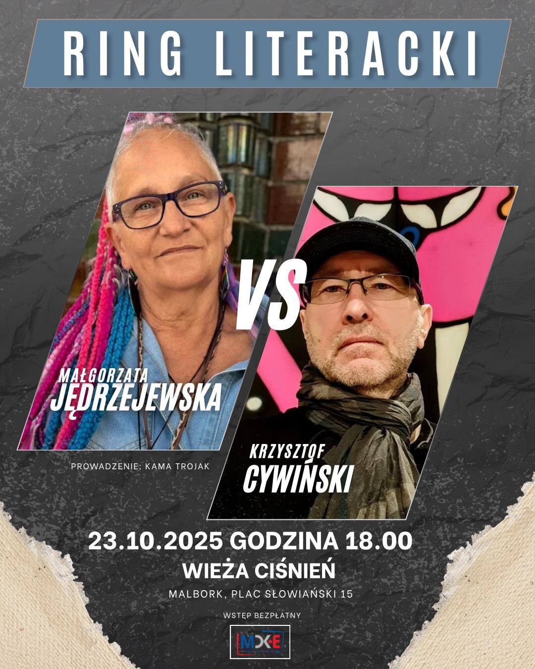 Malborskie Centrum Kultury i Edukacji – Wieża Ciśnień zaprasza na premierowe spotkanie z nowego cyklu „Ring Literacki”, w którym nie pięści, lecz słowa, emocje i refleksje staną do pojedynku.