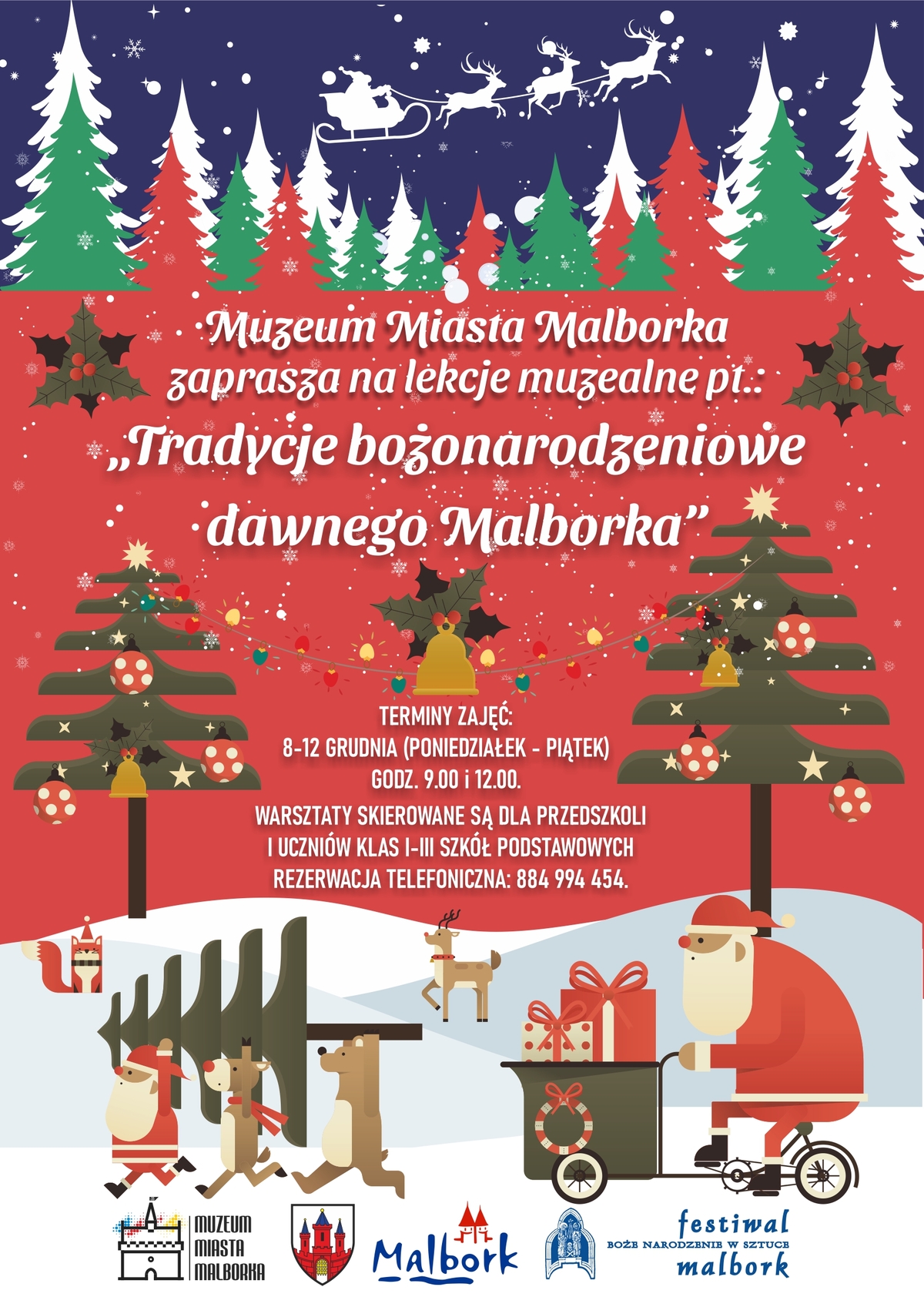 Muzeum Miasta Malborka serdecznie zaprasza przedszkola oraz klasy I-III szkół podstawowych na wyjątkowe lekcje muzealne pt. "Tradycje bożonarodzeniowe dawnego Malborka", w tym roku gościem specjalnym będzie... św. Mikołaj.