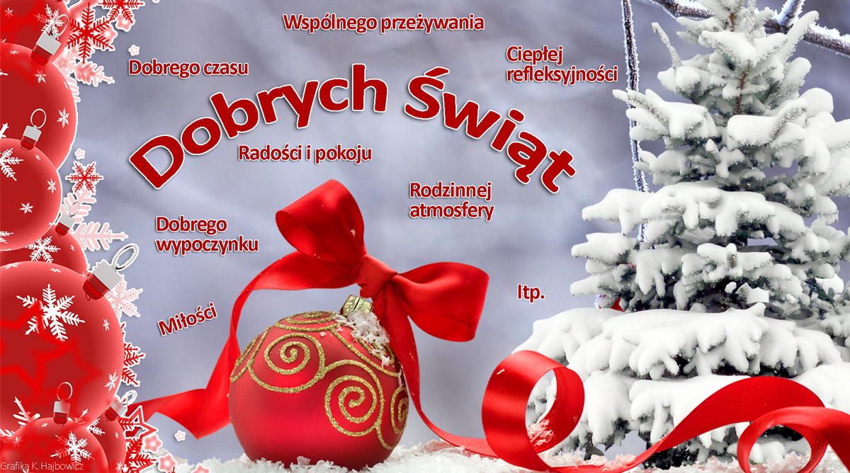 Z okazji nadchodzących Świąt oraz Nowego Roku chcemy złożyć Wszystkim życzenia spokoju, zdrowia, poczucia bezpieczeństwa i wszelkiej Pomyślności bogatej w dobro, wrażliwość i dobrze rozumiany patriotyzm. Nie podszyty hipokryzją, pustosłowiem a mądrą otwartością, na bliźnich w potrzebie.
