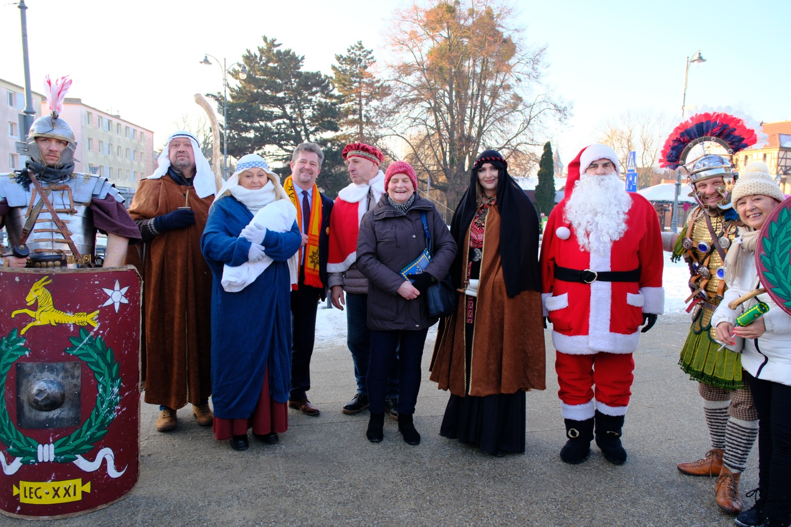 W rolę posłańca Herolda, dokonującego tłumaczenia na aramejski w dialekcie galilejskim, wcielił się Michał Kierzkowski, któremu towarzyszyła Małgorzata Badziong, dyrektor MCKiE. Orientalny klimat bazaru stworzyli aktorzy i aktorki malborskiego teatru ZRYW, a pan Tadeusz Kosecki z tego samego teatru tradycyjnie wystąpił jako Święty Mikołaj. Niezwykle cenne było także wsparcie Wolontariuszy Malborskiego Centrum Wolontariatu. Na uczestników czekała ciepła herbata, pierniki oraz kremówki przygotowane przez Patrycję Zacharę-Diachenko.