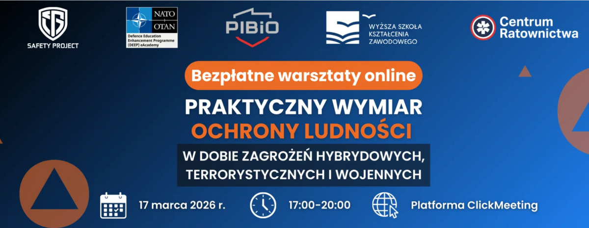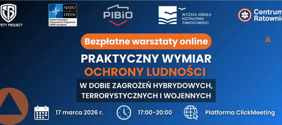 17 marca odbędą się bezpłatne i certyfikowane warsztaty online pt. „Praktyczny wymiar ochrony ludności w dobie zagrożeń hybrydowych, terrorystycznych i wojennych”. Zapraszamy do rejestracji i udziału!