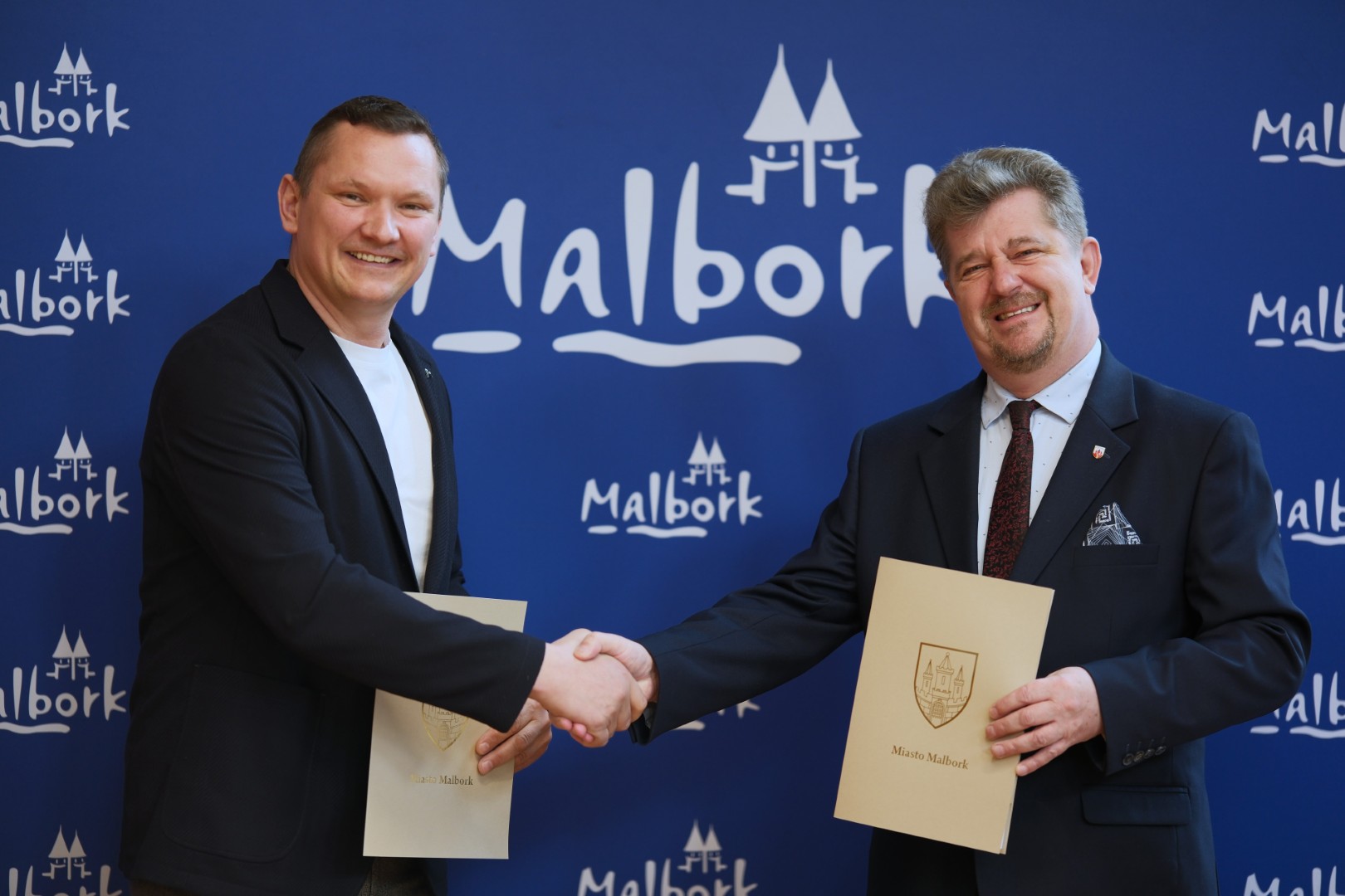 17 kwietnia w Urzędzie Miasta Malborka burmistrz Marek Charzewski podpisał umowę z Arkadiuszem Rawinskim reprezentującym firmę Rawiński Rzemiosło Budowlane S.K.A na realizację projektu „Modernizacja energetyczna zabytkowych budynków użyteczności publicznej w mieście Malbork - Budynek Urzędu Miasta”, dofinansowanego ze środków Europejskiego Funduszu Rozwoju Regionalnego w ramach Programu Fundusze Europejskie dla Pomorza 2021–2027, w ramach umowy o dofinansowanie nr FEPM:02.03-IZ.00-0006/25-00.